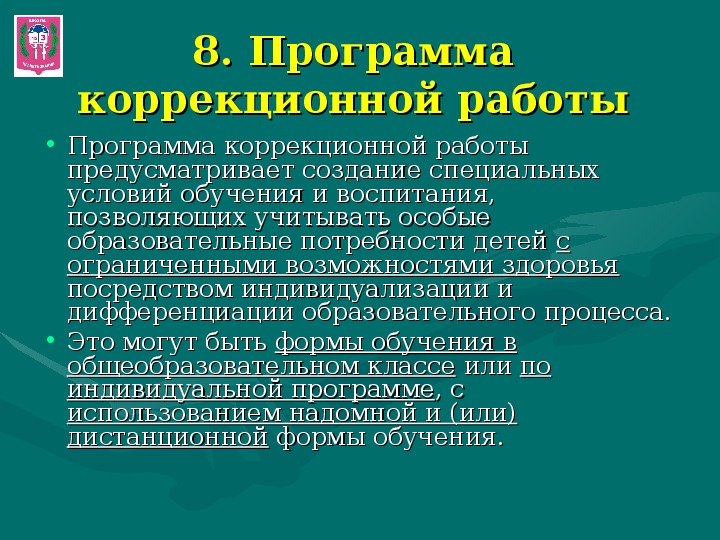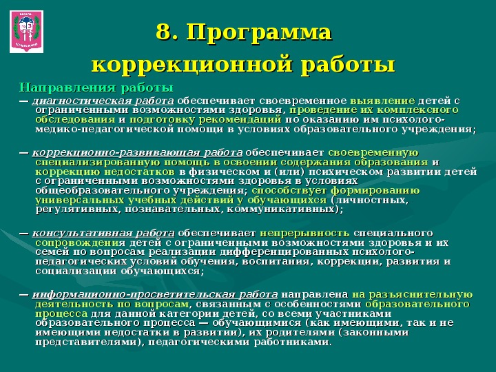 коррекцию недостатков в физическом и (или) психическом развитии детей