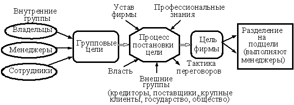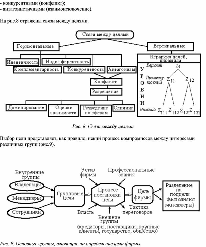 Выбор цели представляет, как правило, некий процесс компромиссов между интересами различных групп (рис.9).
