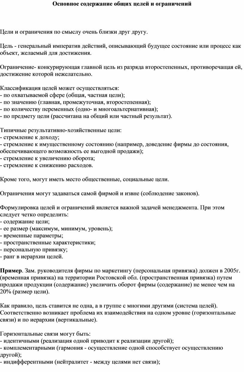 целей и ограничений является важной задачей менеджмента. При этом следует четко