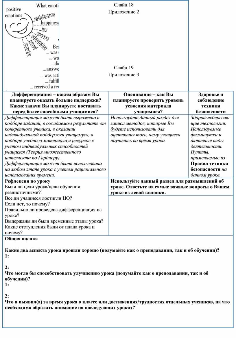 Межпрежметная связь с английским языком. При проведении рефлексии к уроку применяются фразы и слова на английском языке, выражающие эмоции |