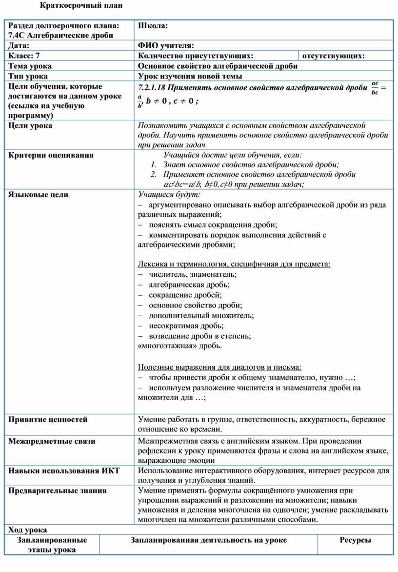 7.2.1.18 Применять основное свойство алгебраической дроби