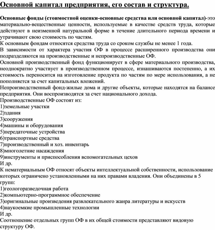 Основные фонды (стоимостной оценки-основные средства или основной капитал)-это материально-вещественные ценности, используемые в качестве средств труда, которые действуют в неизменной натуральной форме в течение длительного периода времени и утрачивают свою стоимость по частям.