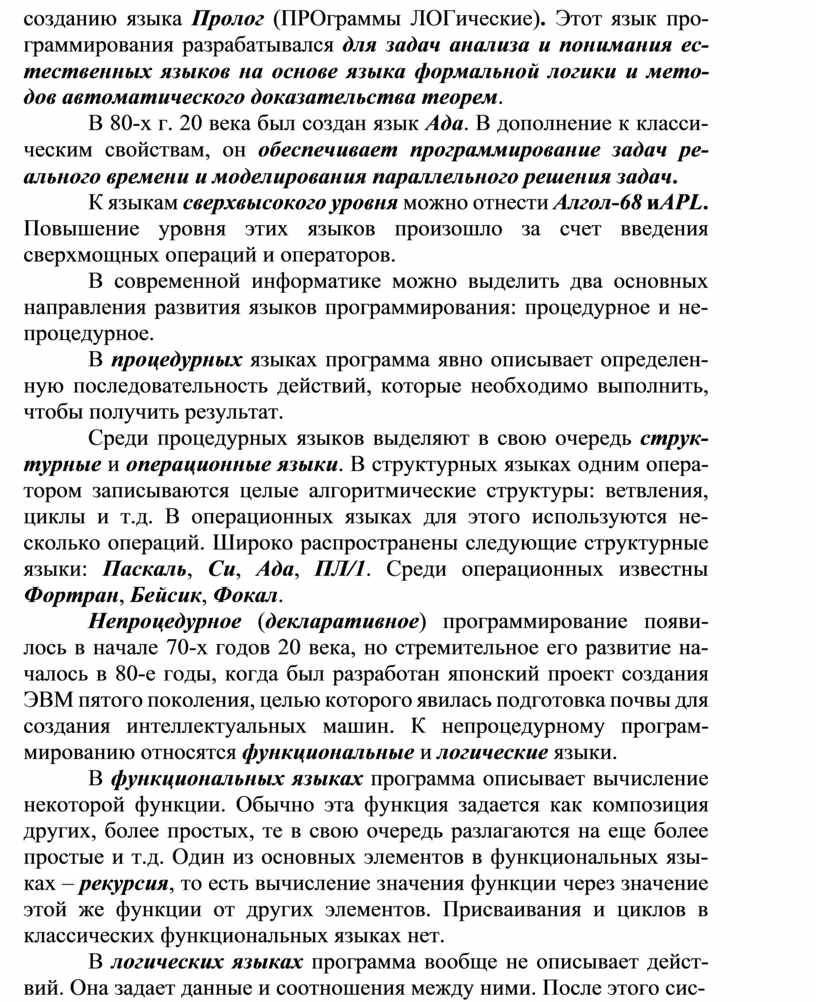 В современной информатике можно выделить два основных направления развития языков программирования: процедурное и не- процедурное.