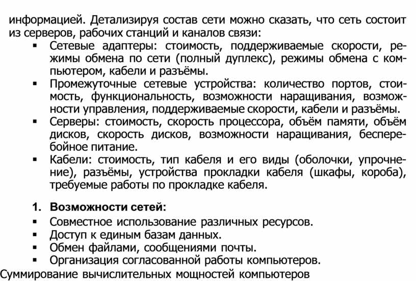 § Промежуточные сетевые устройства: количество портов, стои- мость, функциональность, возможности наращивания, возмож- ности управления, поддерживаемые скорости, кабели и разъёмы.