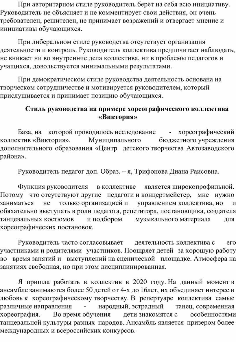 Сегодня деятельность руководителя имеет многомерные характеристики, многие им, в хореографии: