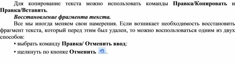 Все мы иногда меняем свои намерения. Если возникает необходимость восстановить фрагмент текста, который перед этим был удален, то можно воспользоваться одним из двух способов: