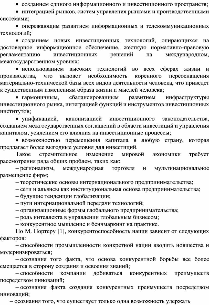 В работе [1] М. Портер отмечает следующие основные тенденции развития международной конкуренции: