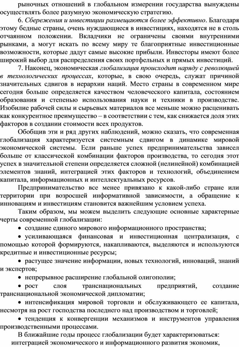 1. Прежде большая часть мира не участвовала в глобальной экономике. Сегодня большее, чем когда-либо ранее, количество стран, открыли свои границы для торговли, финансов, инвестиций и информации. Не только развитые, но и развивающиеся страны проводят реформирование своих экономик.