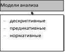 Как направлению экономического анализа — финансовому анализу свойственно использование различного типа моделей, позволяющих структурировать и идентифицировать взаимосвя- зи между основными показателями. Выделяют три основных типа аналитических моделей: дескриптивные, предикативные и нормативные.