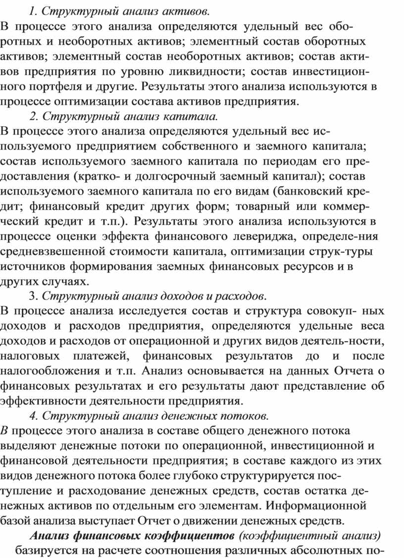 В процессе этого анализа определяются удельный вес обо- ротных и необоротных активов; элементный состав оборотных активов; элементный состав необоротных активов; состав акти- вов предприятия по уровню ликвидности; состав инвестицион- ного портфеля и другие. Результаты этого анализа используются в процессе оптимизации состава активов предприятия.
