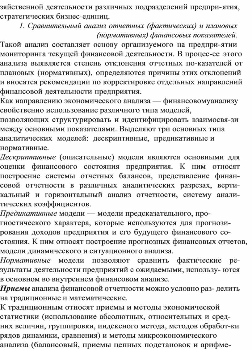 Нормативные модели позволяют сравнить фактические ре- зультаты деятельности предприятий с ожидаемыми, использу- ются в основном во внутреннем финансовом анализе.