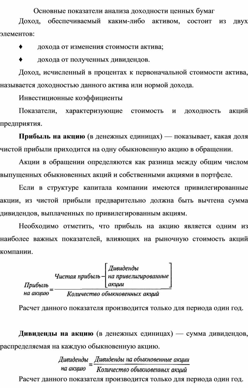Прибыль на акцию (в денежных единицах) — показывает, какая доля чистой прибыли приходится на одну обыкновенную акцию в обращении.