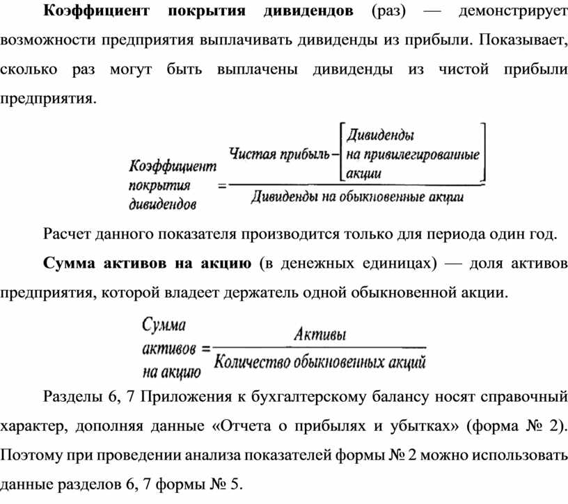 Коэффициент покрытия дивидендов (раз) — демонстрирует возможности предприятия выплачивать дивиденды из прибыли. Показывает, сколько раз могут быть выплачены дивиденды из чистой прибыли предприятия.
