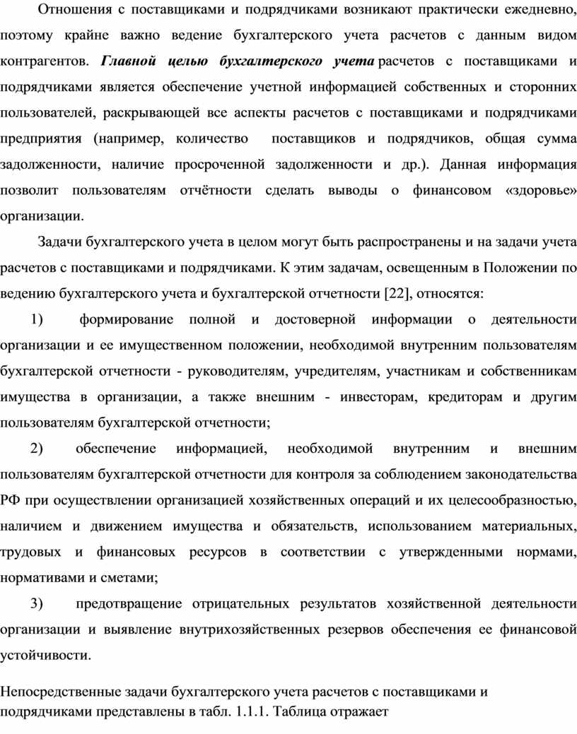 Задачи бухгалтерского учета в целом могут быть распространены и на задачи учета расчетов с поставщиками и подрядчиками. К этим задачам, освещенным в Положении по ведению бухгалтерского учета и бухгалтерской отчетности [22], относятся: