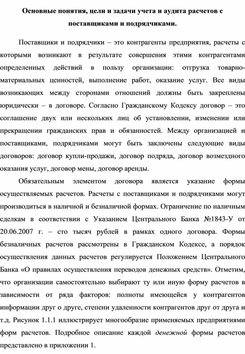 Задачи аудита расчетов с поставщиками и подрядчиками
