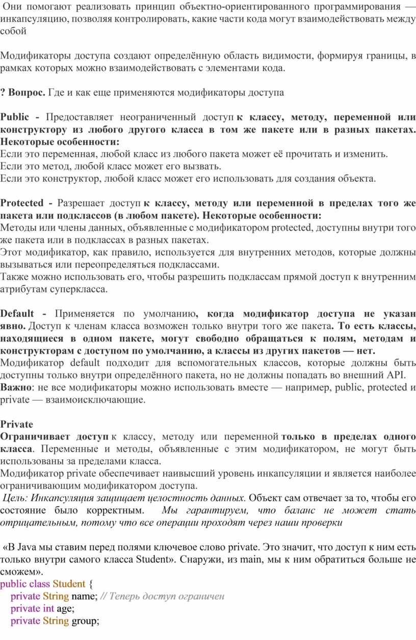 Модификаторы доступа создают определённую область видимости, формируя границы, в рамках которых можно взаимодействовать с элементами кода.