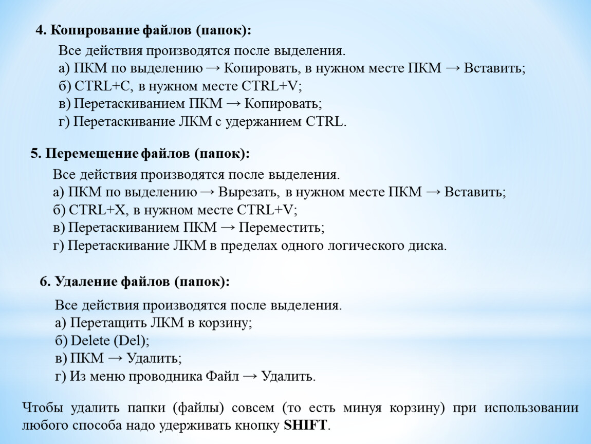Способы создания, переименования, копирования, перемещения и удаления файлов и папок