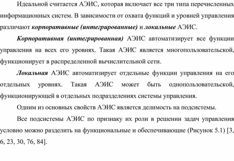 Идеальной считается АЭИС, которая включает все три типа перечисленных информационных систем. В зависимости от охвата функций и уровней управления различают корпоративные (интегрированные) и локальные АЭИС.
