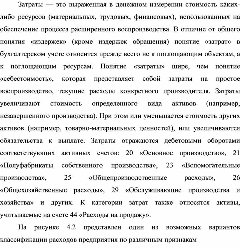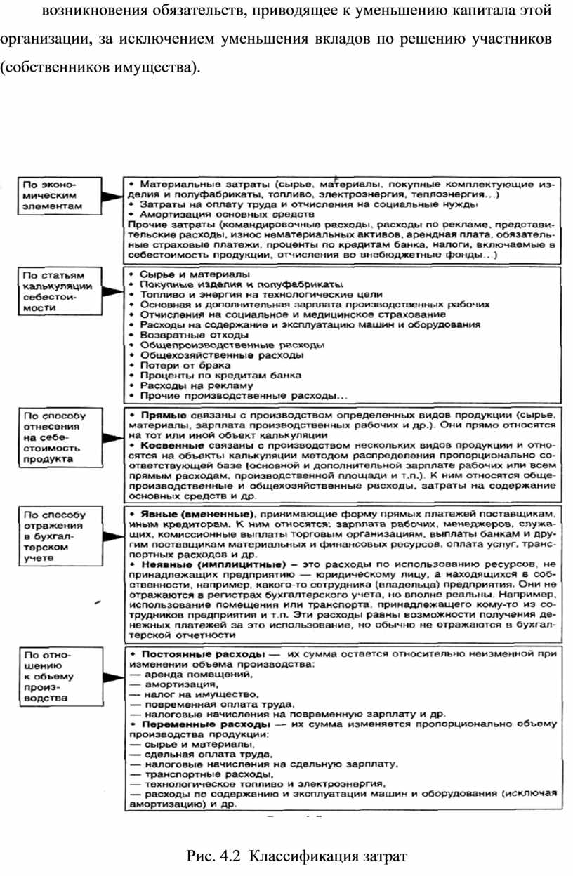 На рисунке 4.2 представлен один из возможных вариантов классификации расходов предприятия по различным признакам