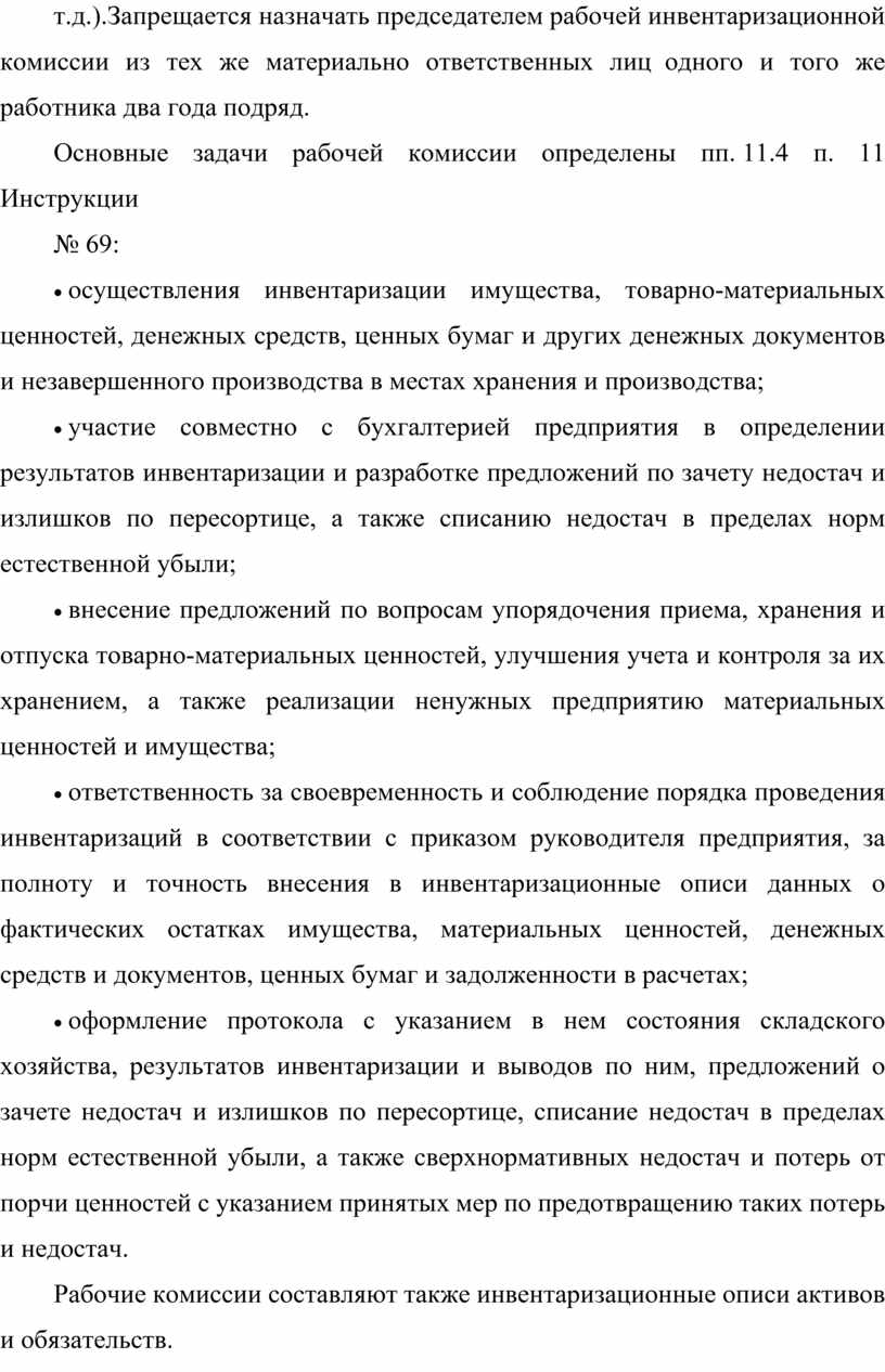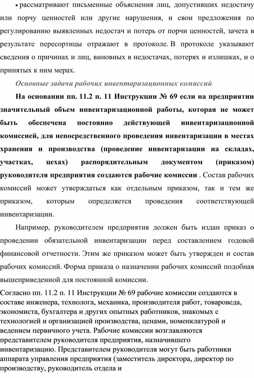 Кроме того, основные задачи постоянно действующей инвентаризационной комиссии приведены в пп. 11.3 п. 11 Инструкции № 69, в частности они: