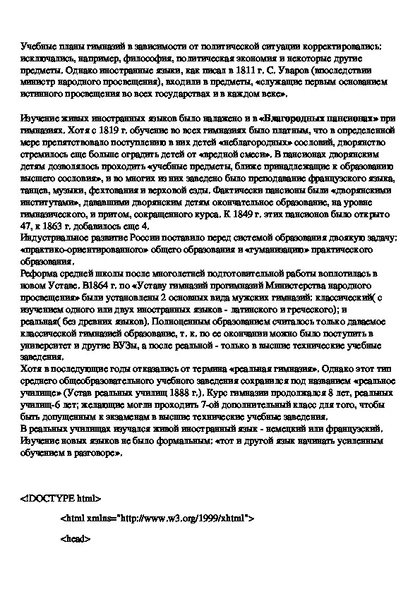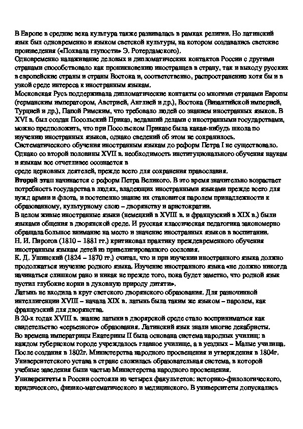 ученые), а включение предмета «иностранный язык» в учебные программы средней и