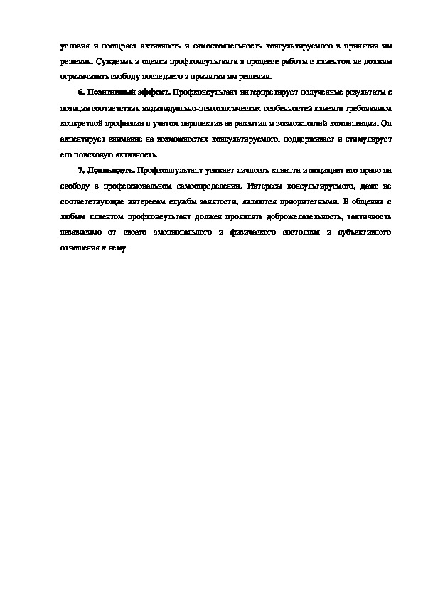 свободу в профессиональном самоопределении. Интересы консультируемого, даже не