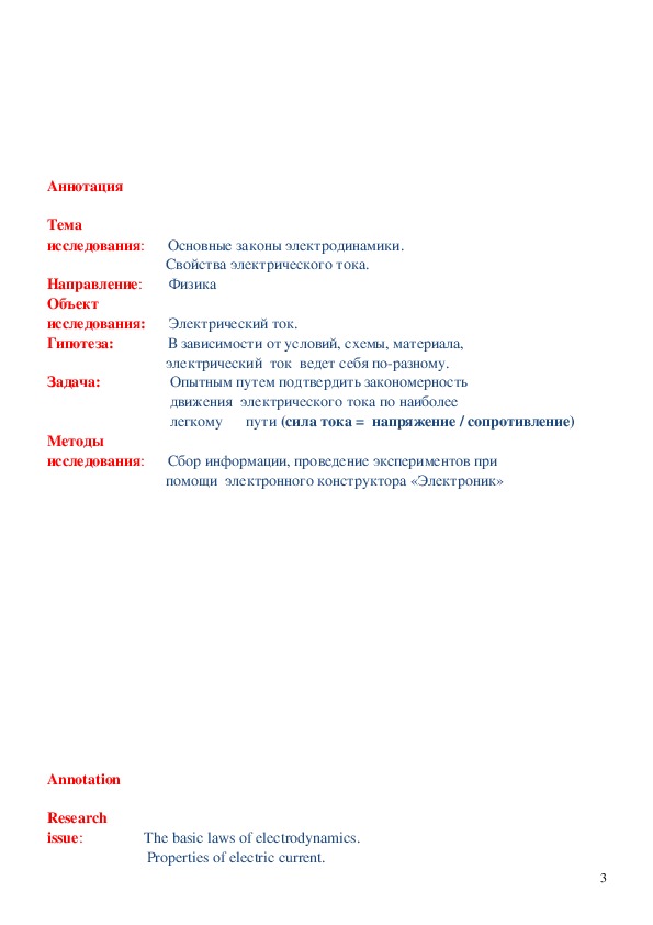 Методы исследования: Сбор информации, проведение экспериментов при помощи электронного конструктора «Электроник»Аннотация