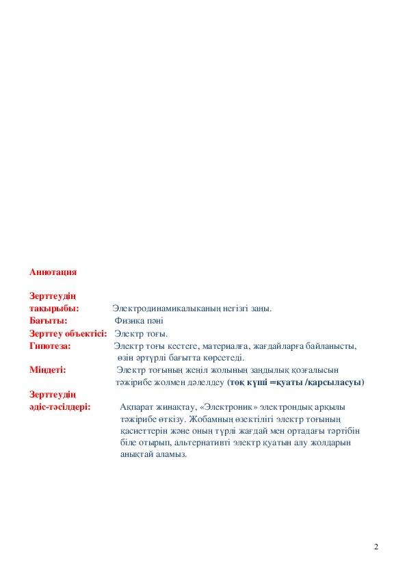 тәжірибе өткізу. Жобамның өзектілігі электр тоғының