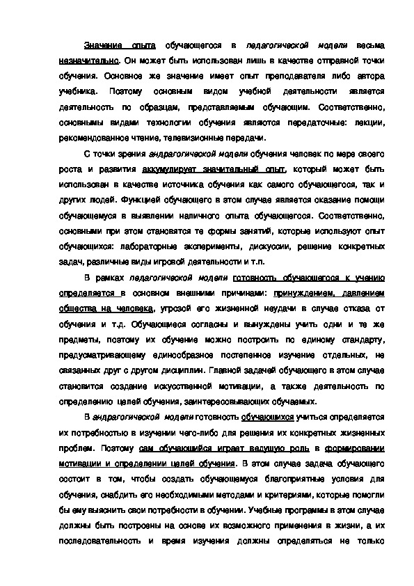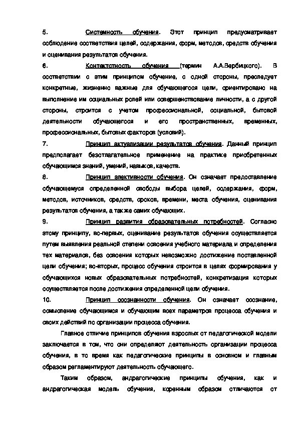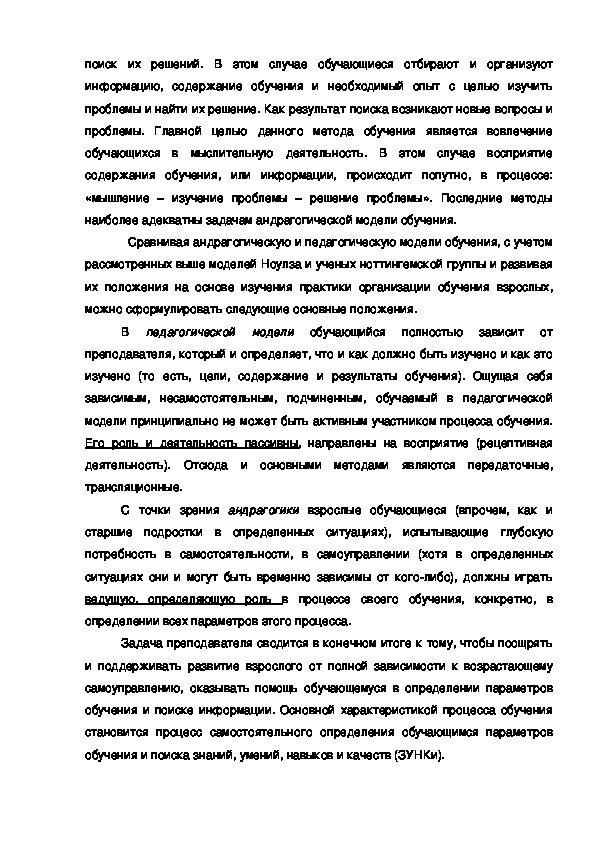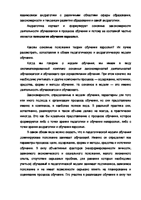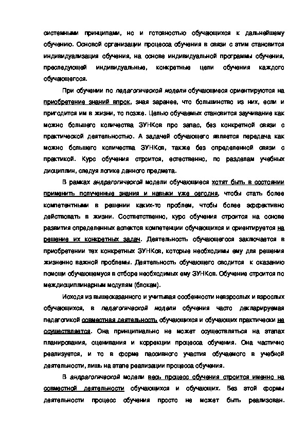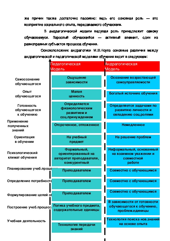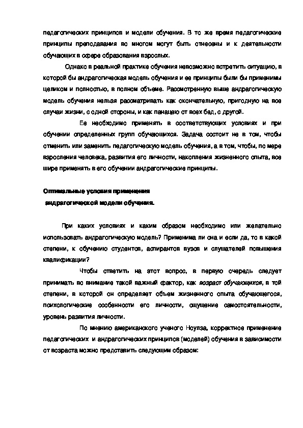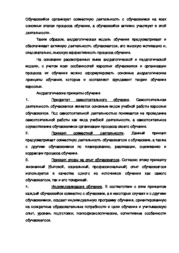 педагогическими, и андрагогическими принципами (моделями) обучения и, в