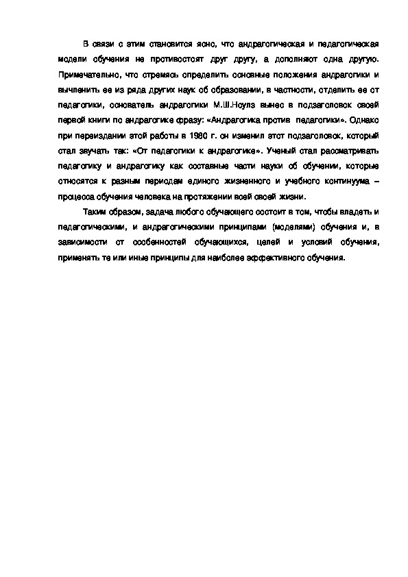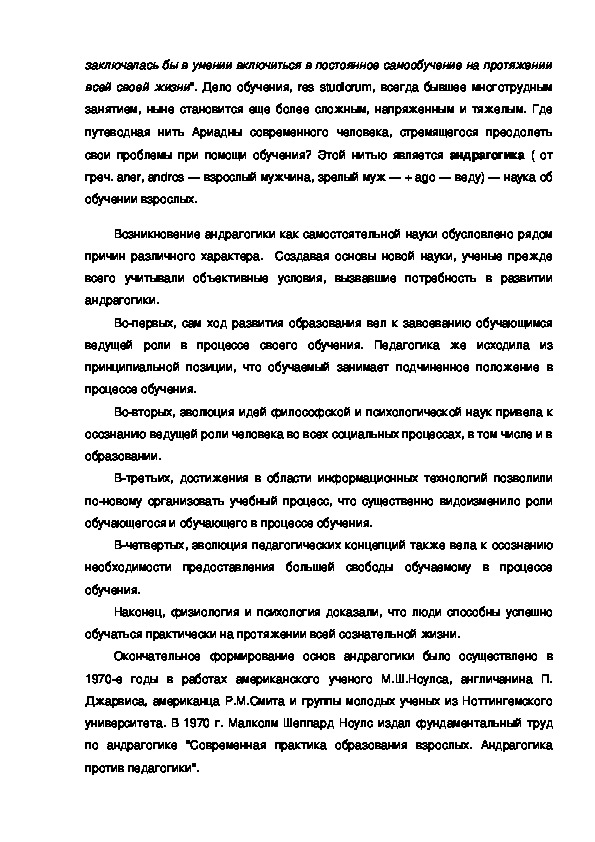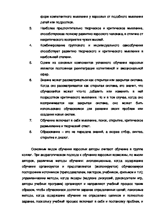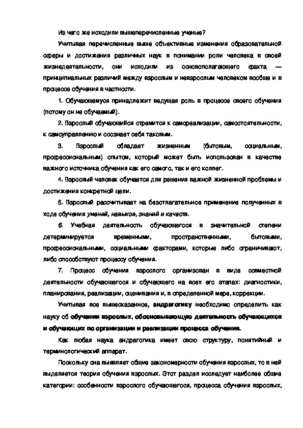 Примечательно, что стремясь определить основные положения андрагогики и