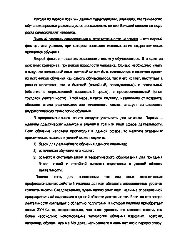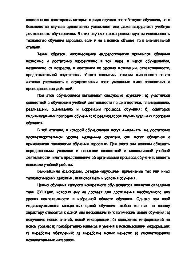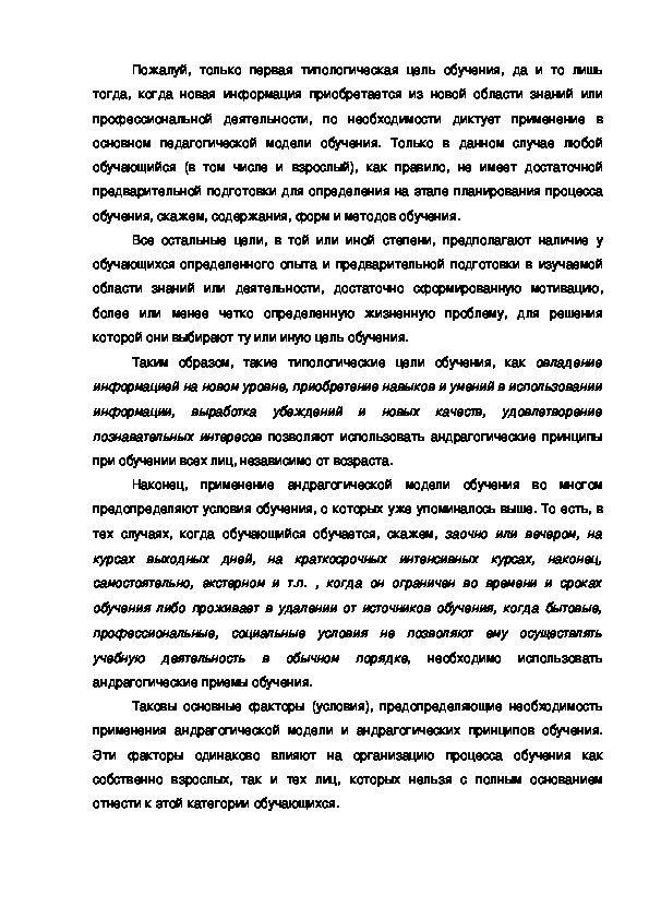 обучение, также диктует целесообразность применения андрагогических