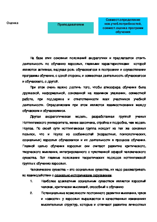 применения андрагогической модели и андрагогических принципов обучения.