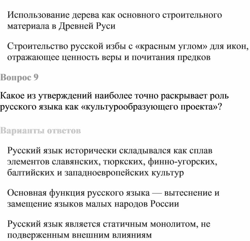Какое из утверждений наиболее точно раскрывает роль русского языка как «культурообразующего проекта»?