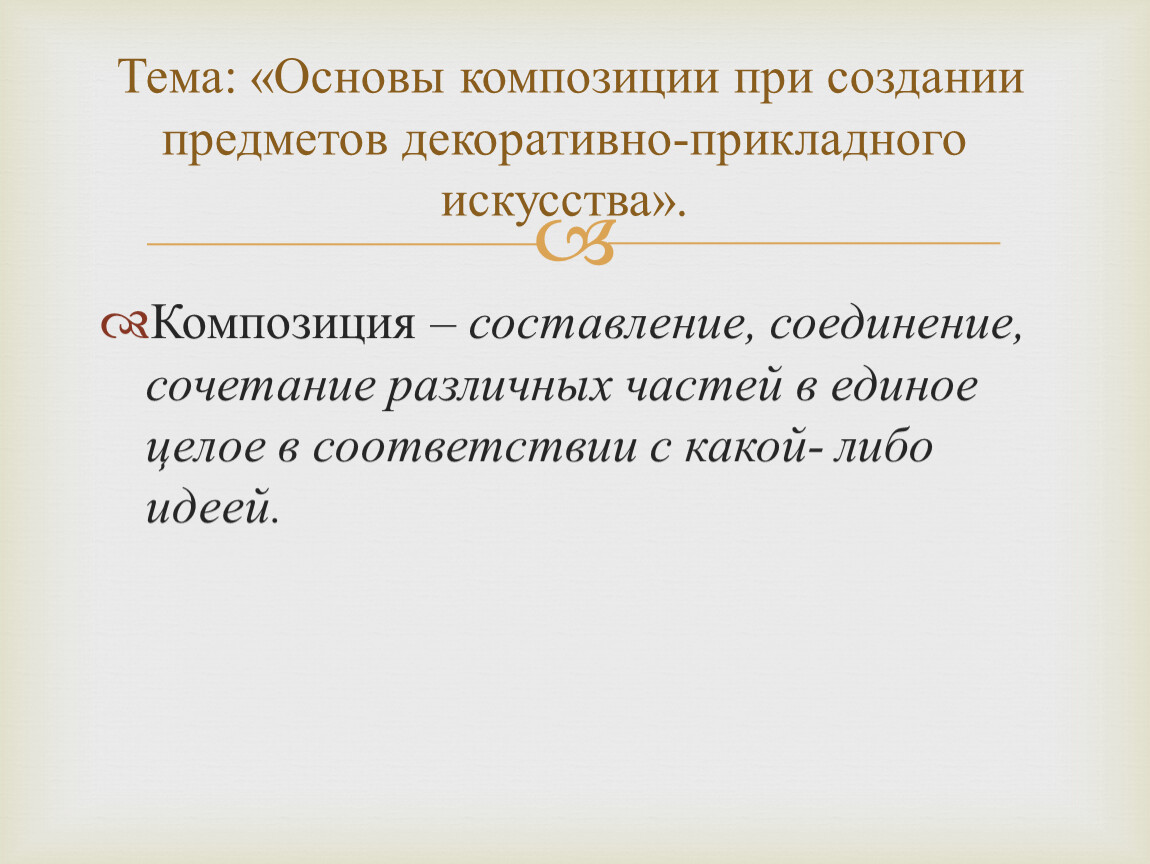 Тема: «Основы композиции при создании предметов декоративно-прикладного искусства».