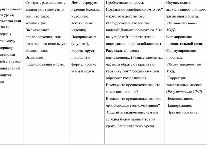 Осуществлять актуализацию личного жизненного опыта. (Познавательные УУД). Формирование познавательной цели. Формулирование проблемы (Коммуникативные УУД). Коррекция высказанных мнений. (Регулятивные УУД). Целеполагание. Планирование. Прогнозирование. |