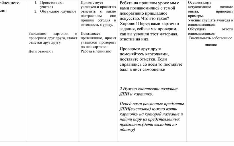 Ребята на прошлом уроке мы с вами познакомились с темой декоративно прикладное искусство. Что это такое? Хорошо! Перед вами карточки задания, сейчас мы проверим, как вы усвоили этот материал, ответив на них. Проверьте друг друга поменяйтесь карточками, поставьте отметки. Если справились со всем то поставьте балл в лист самооценки