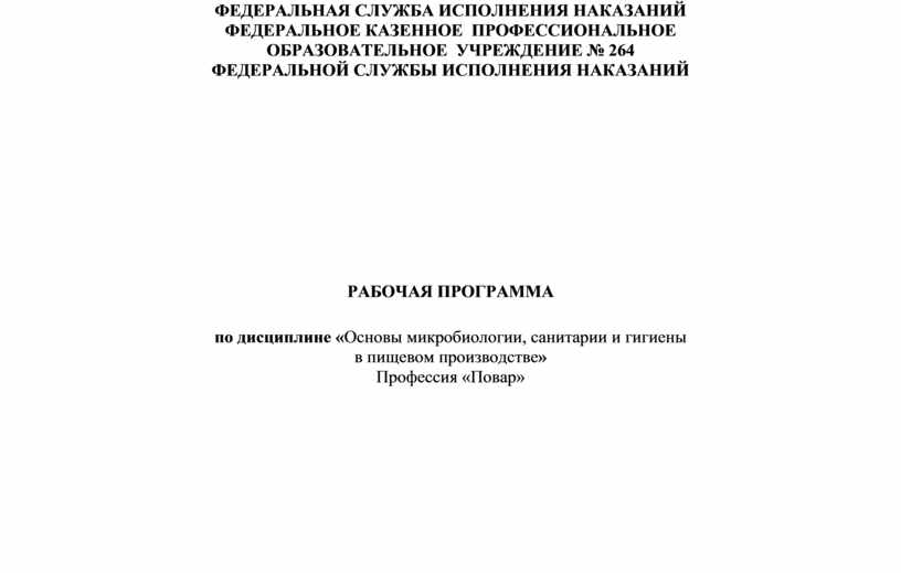 ФЕДЕРАЛЬНОЕ КАЗЕННОЕ ПРОФЕССИОНАЛЬНОЕ ОБРАЗОВАТЕЛЬНОЕ УЧРЕЖДЕНИЕ № 264