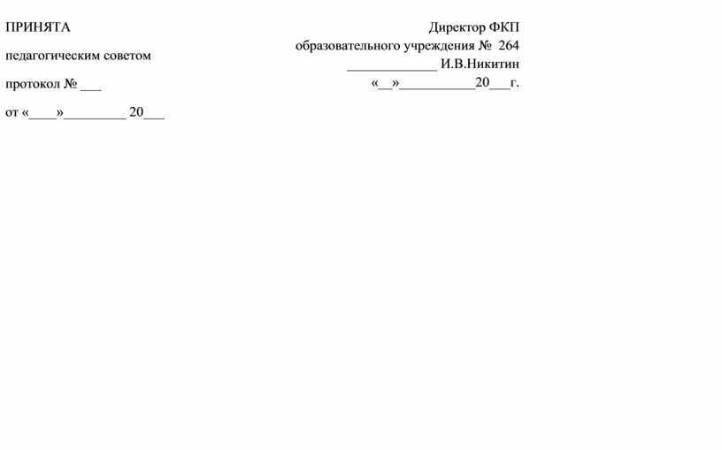 Директор ФКП образовательного учреждения № 264 _____________ И.В.Никитин «__»___________20___г.