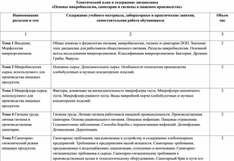 «Основы микробиологии, санитарии и гигиены в пищевом производстве»