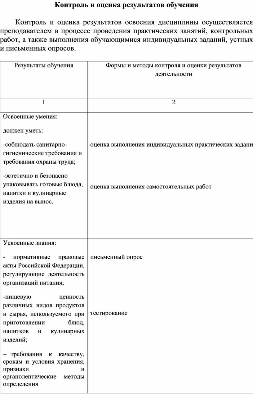 Контроль и оценка результатов обучения