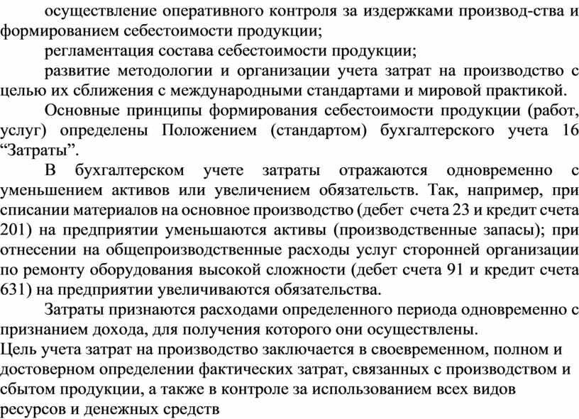 развитие методологии и организации учета затрат на производство с целью их сближения с международными стандартами и мировой практикой.