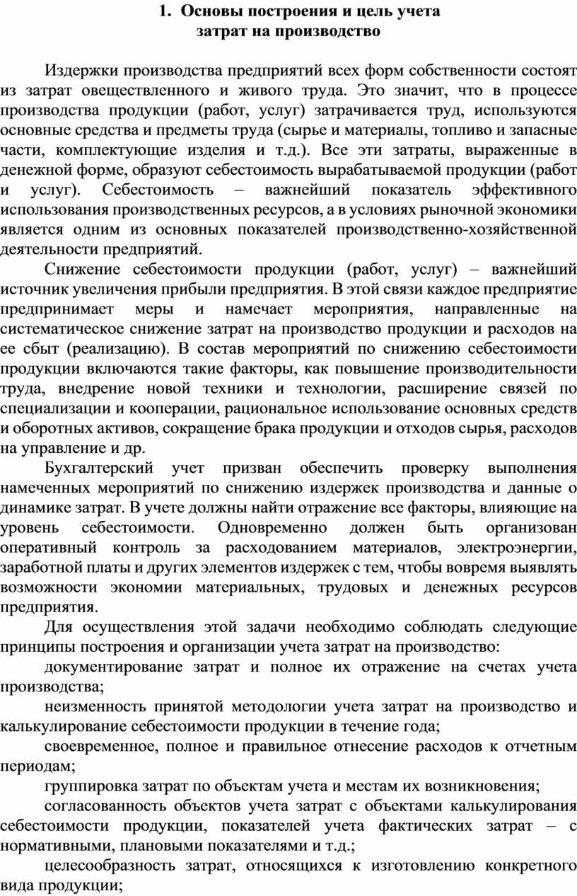 Для осуществления этой задачи необходимо соблюдать следующие принципы построения и организации учета затрат на производство: