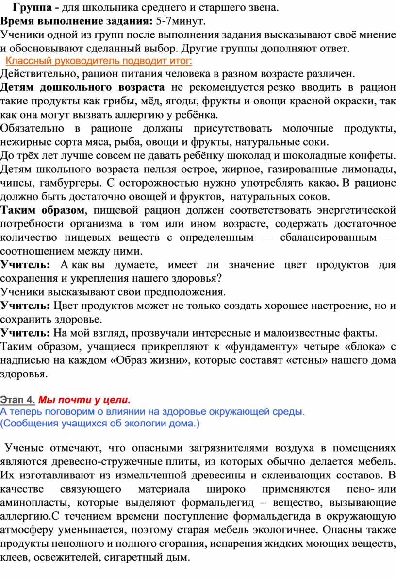 Таким образом, учащиеся прикрепляют к «фундаменту» четыре «блока» с надписью на каждом «Образ жизни», которые составят «стены» нашего дома здоровья.