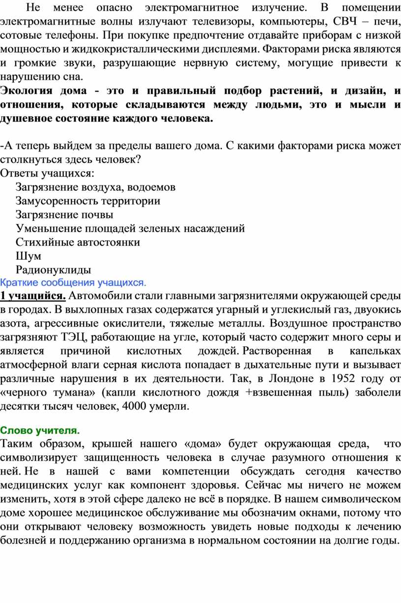 (Сообщения учащихся об экологии дома.)