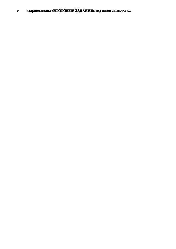Сохранить в папке «ИТОГОВЫЕ ЗАДАНИЯ» под именем «ВЫПЛАТА».