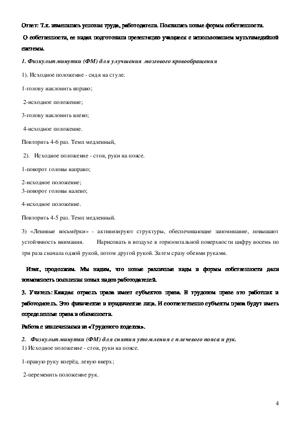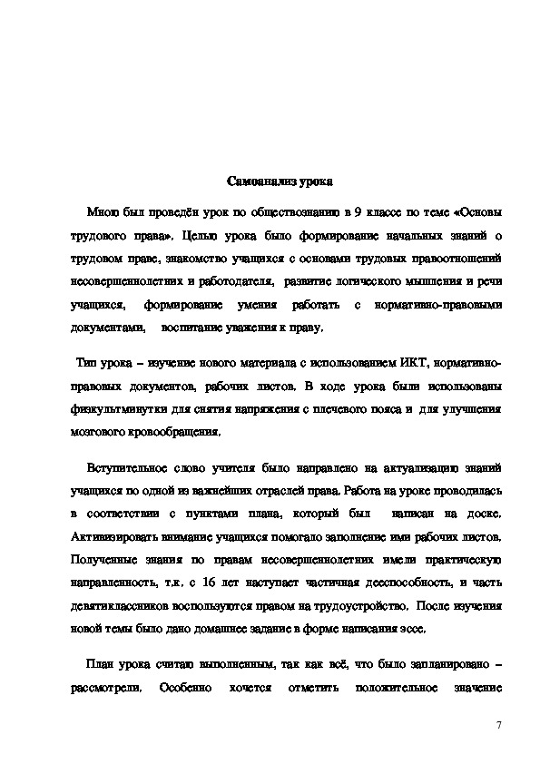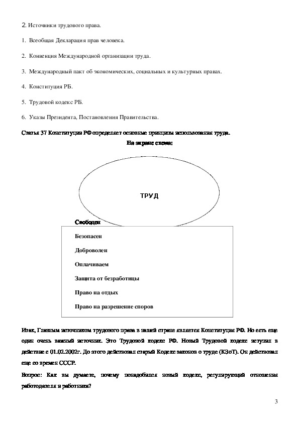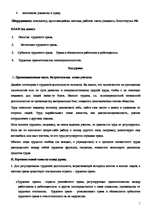 трудового права». Целью урока было формирование начальных знаний о