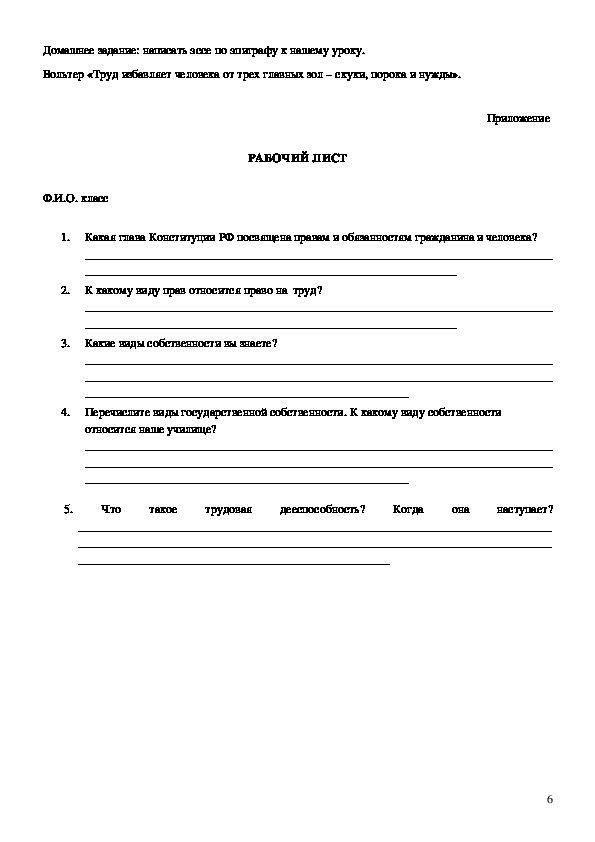 Оборудование: компьютер, мультимедийная система, рабочие листы учащихся, Конституция РФ.