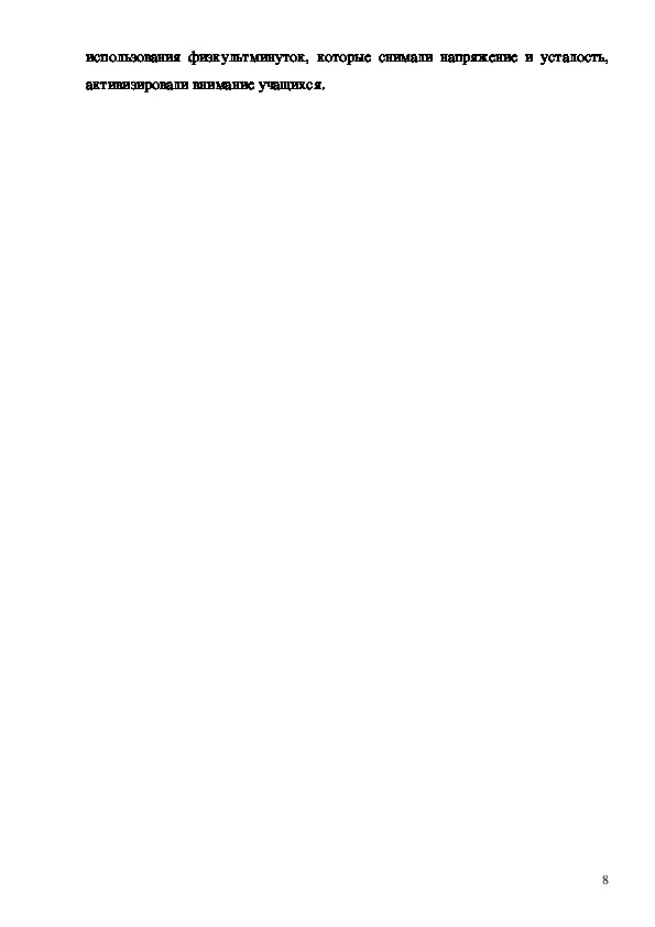 7использования физкультминуток, которые снимали напряжение и усталость,
