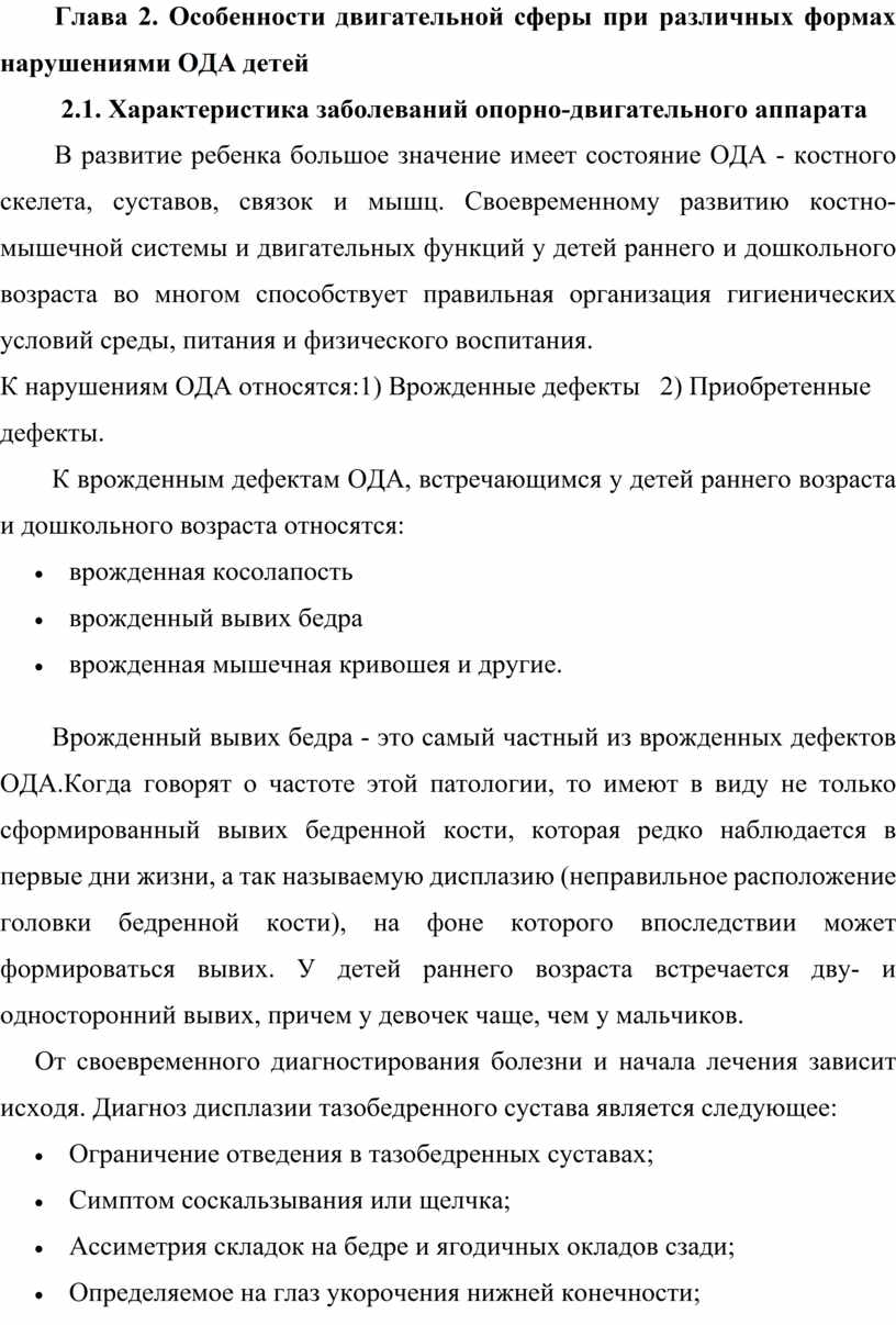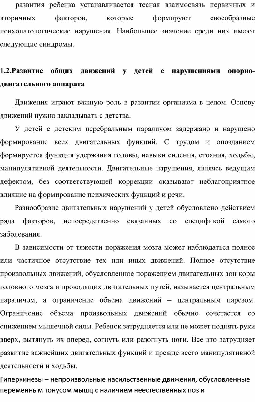 Глава 2. Особенности двигательной сферы при различных формах нарушениями ОДА детей