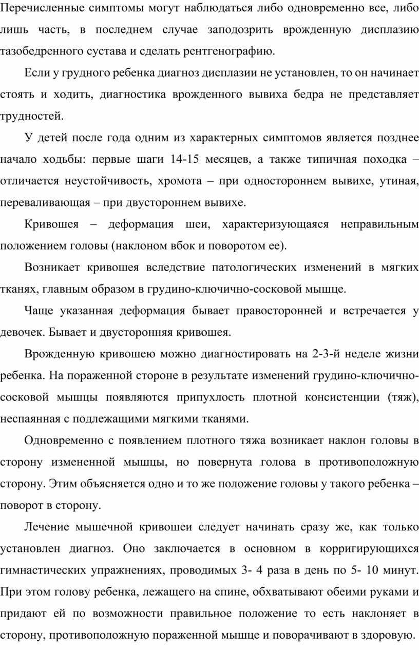 · врожденная мышечная кривошея и другие.